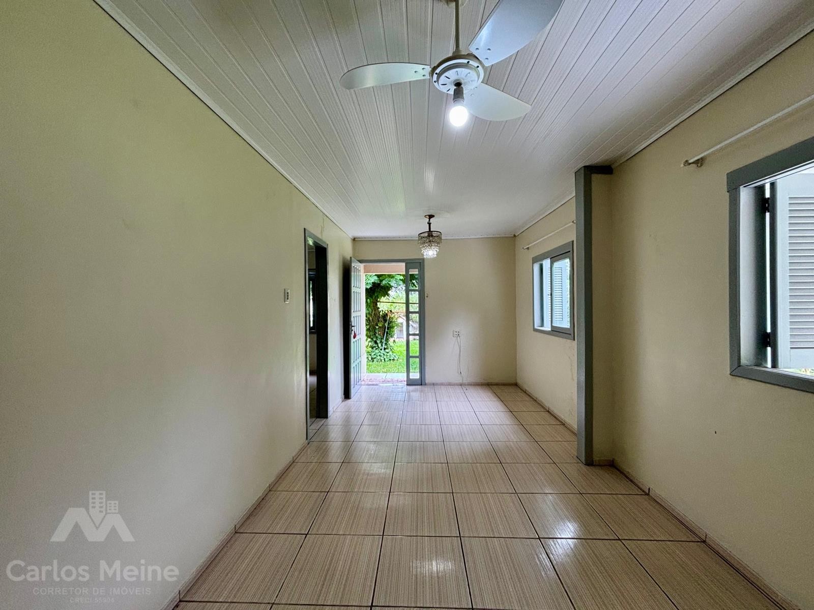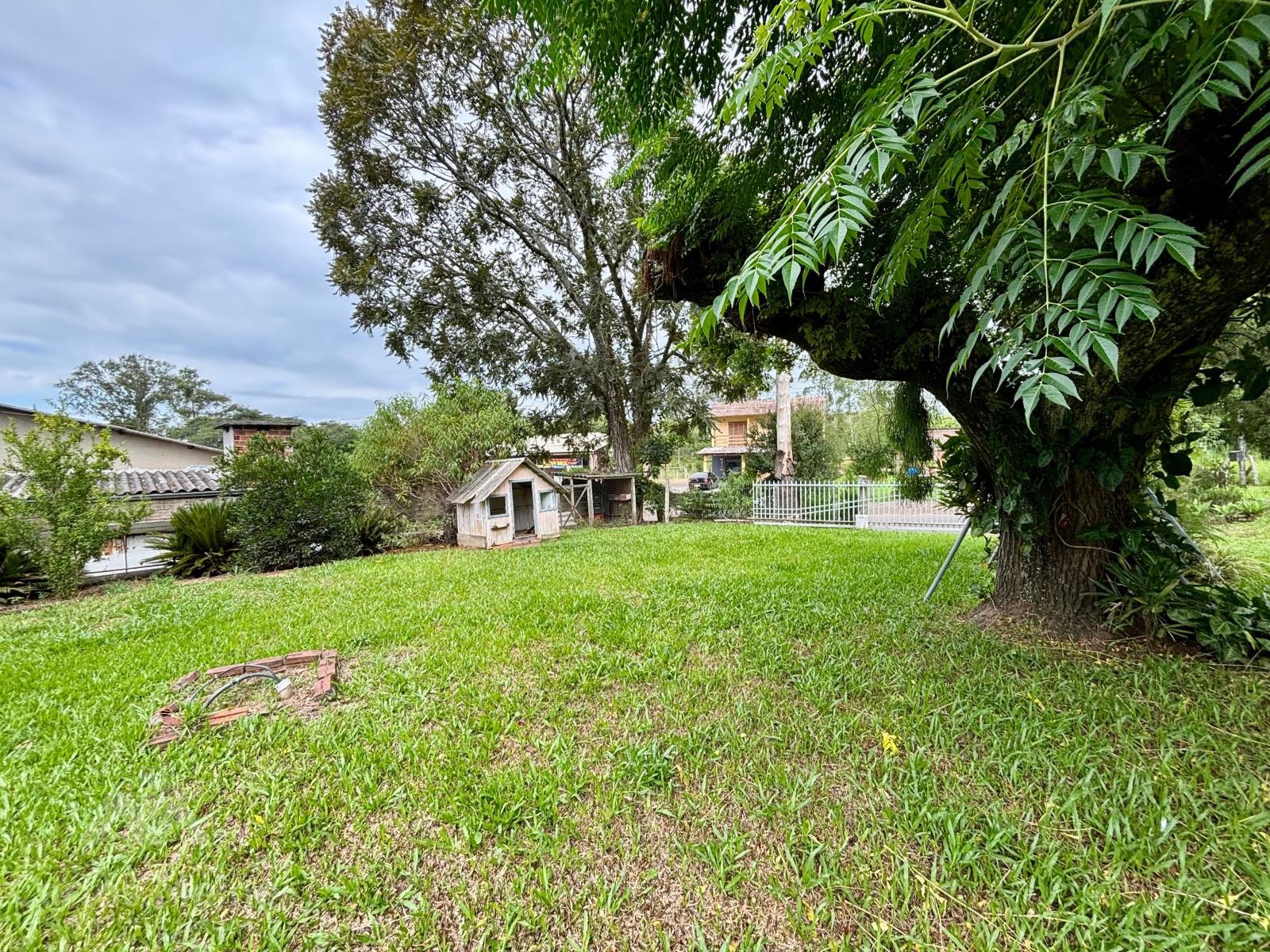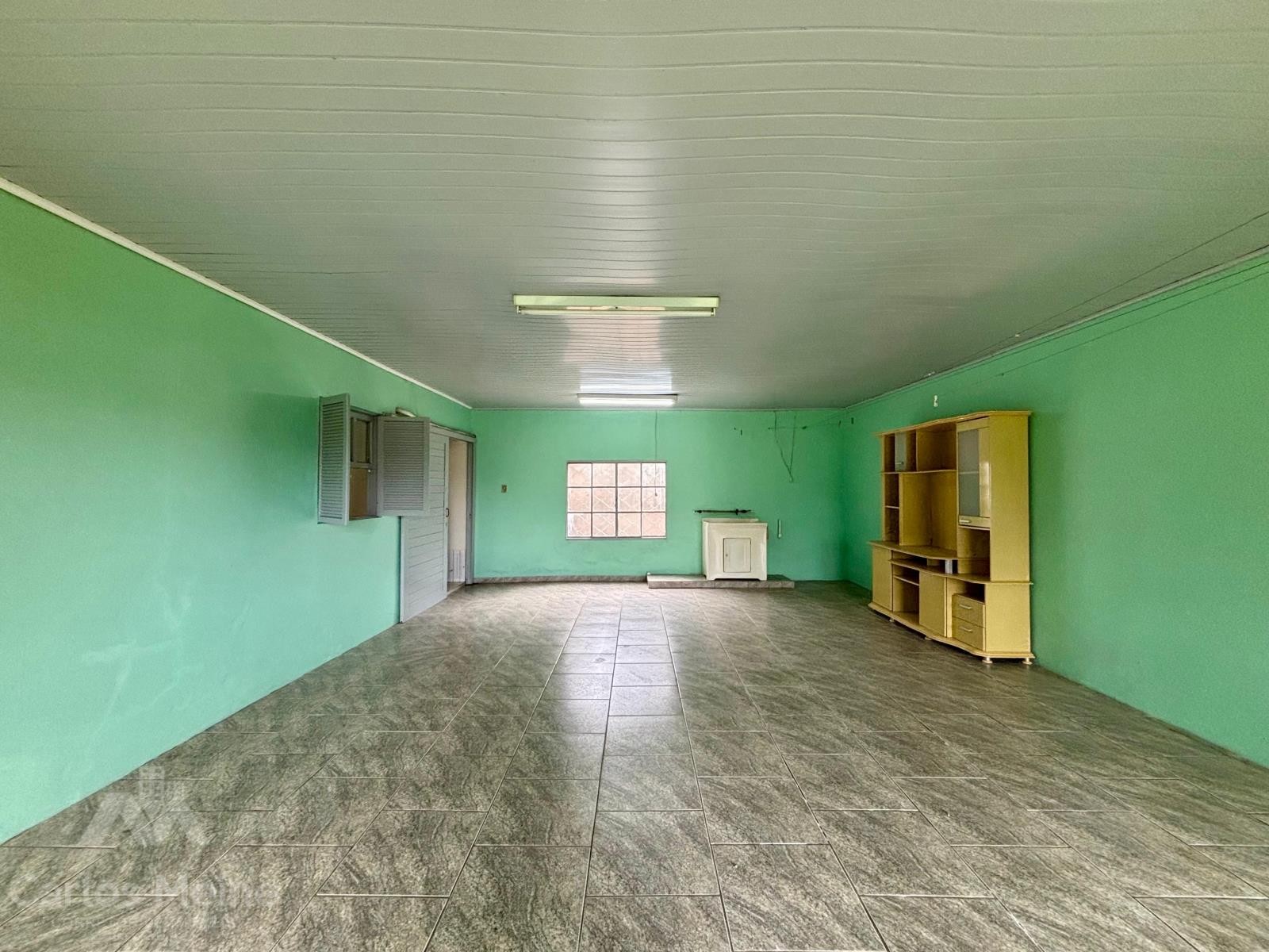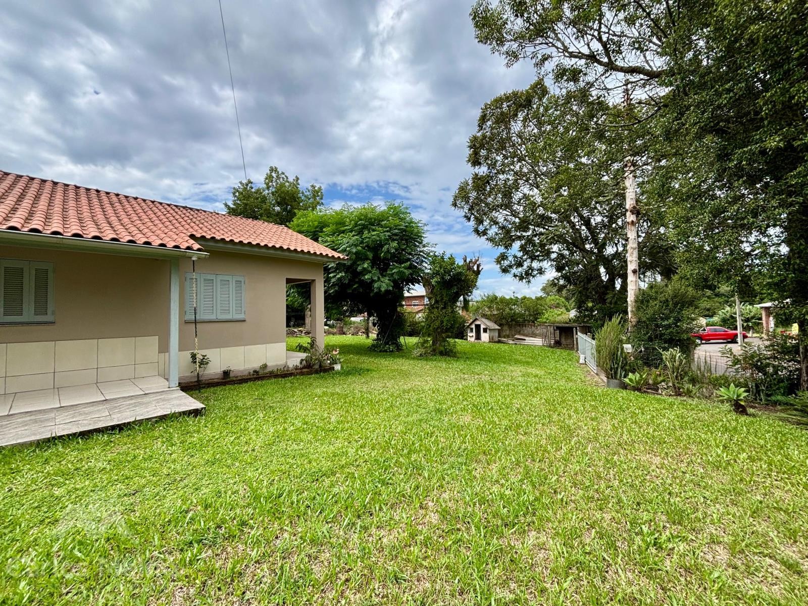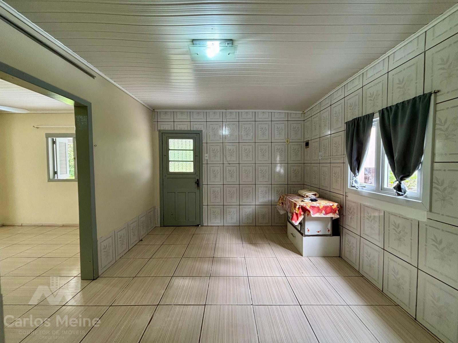 Imóvel amplo em alvenaria composto por 2 dormitórios, sala de estar e jantar em ambiente integrado, cozinha com fogão à lenha, banheiro social, garagem ampla com área de serviço e varanda com churrasqueira.