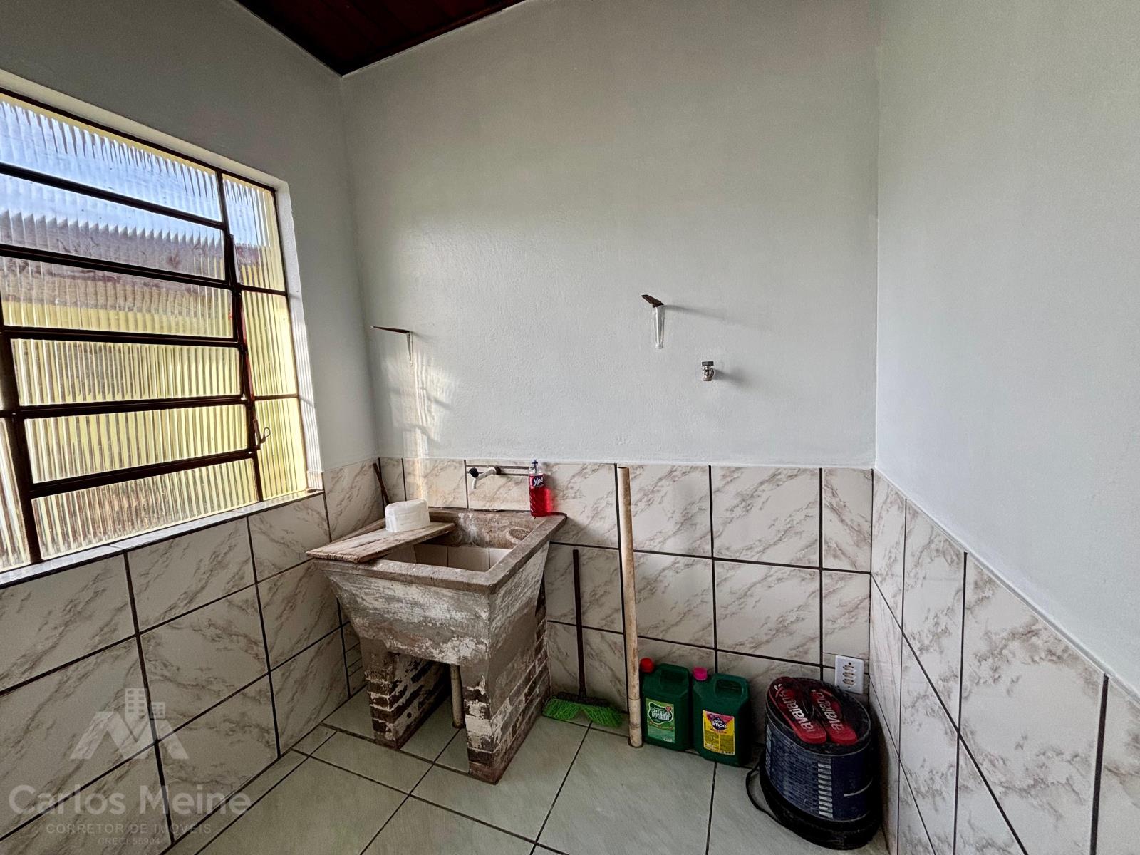 Casa em alvenaria com 3 dormitórios sendo um suite, sala de estar, cozinha, banheiro social, lavanderia e garagem para 3 carros