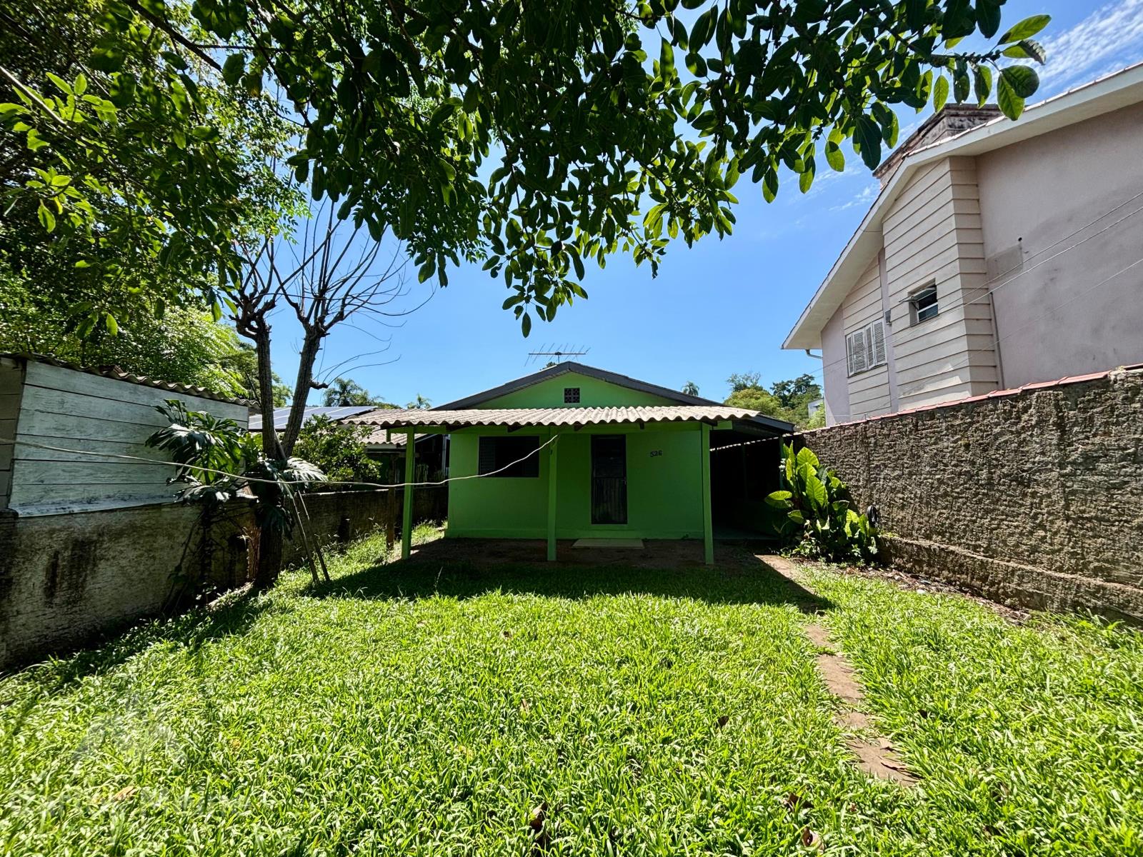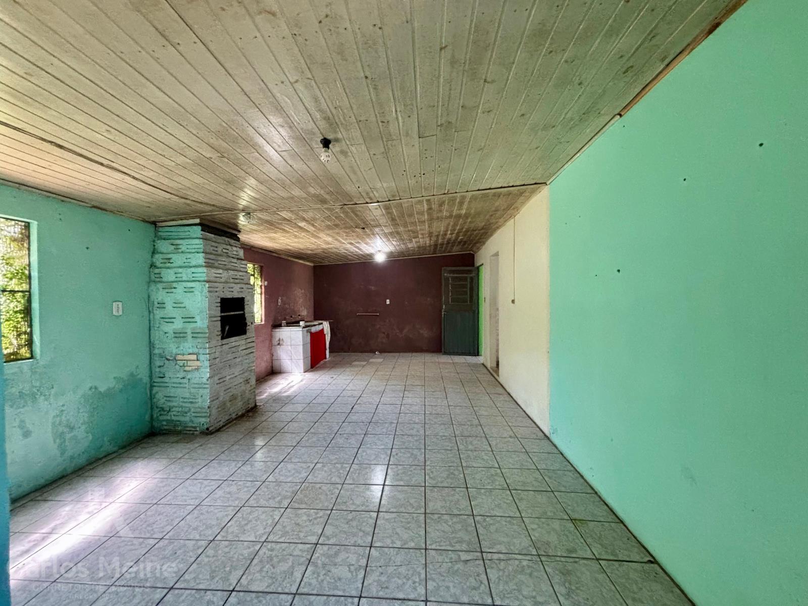 Imóvel em alvenaria composto por 2 dormitórios, sala de estar, cozinha, 2 banheiros e área ampla nos fundos equipada com churrasqueira.