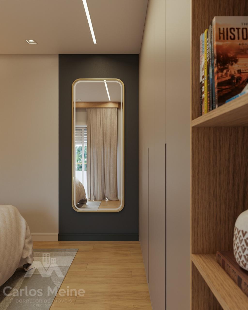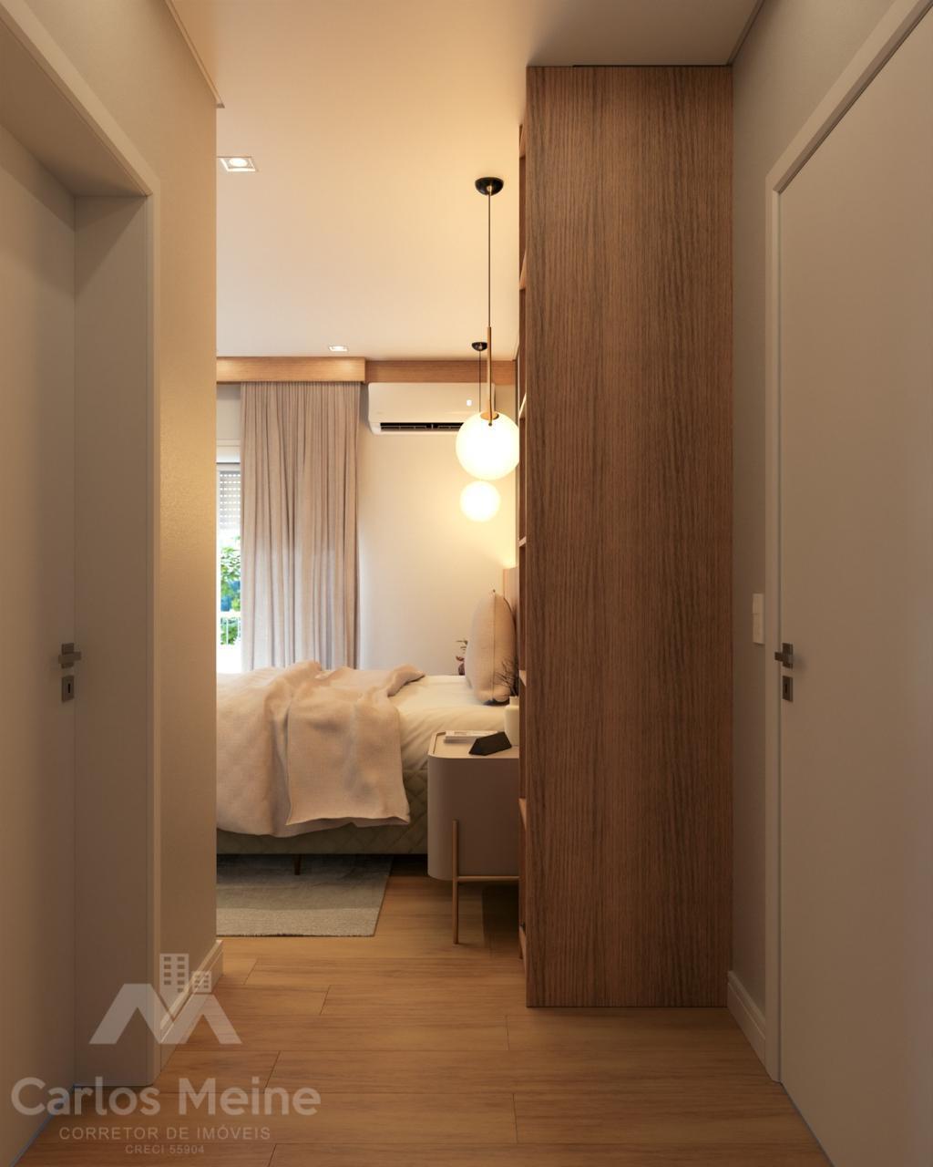 Composto por 2 dormitórios sendo 1 suíte, sala e cozinha em ambiente integrado, área de serviço, banheiro social e box de estacionamento.