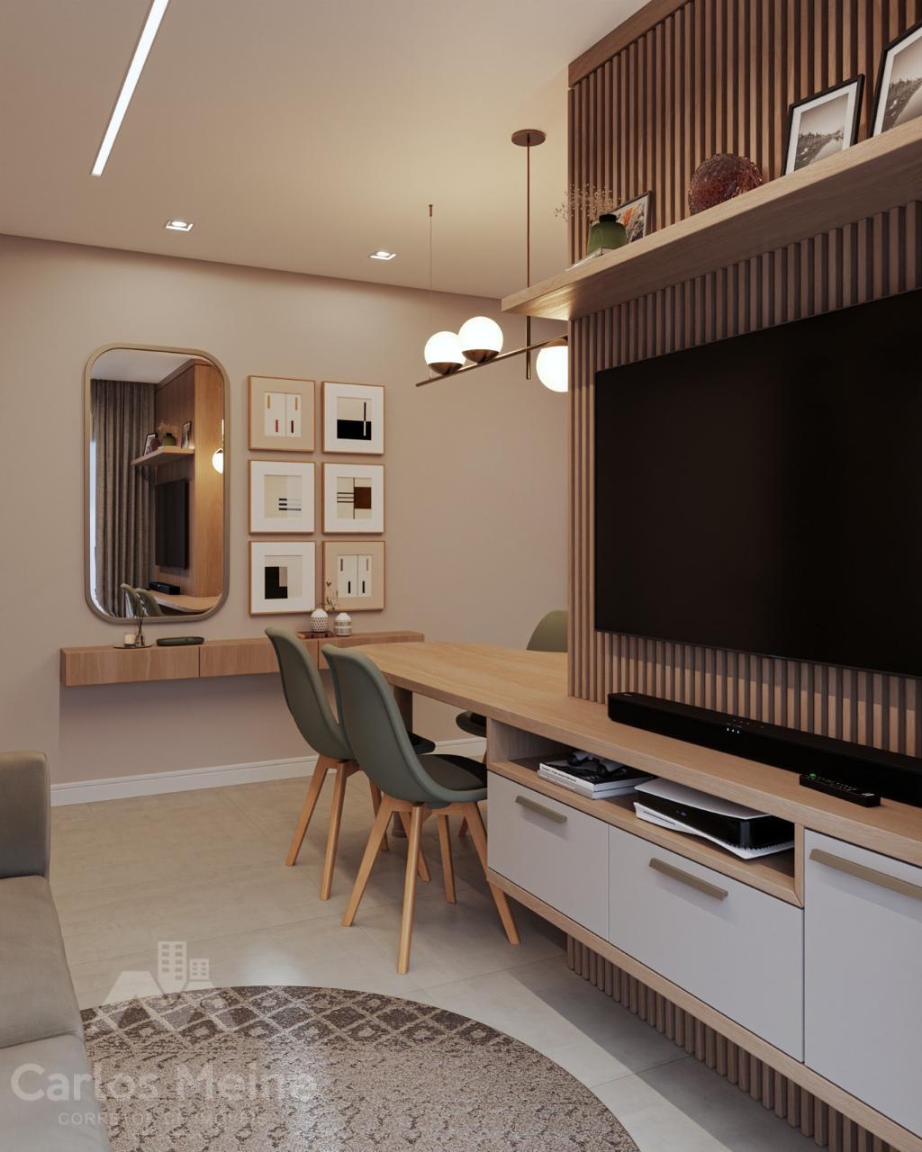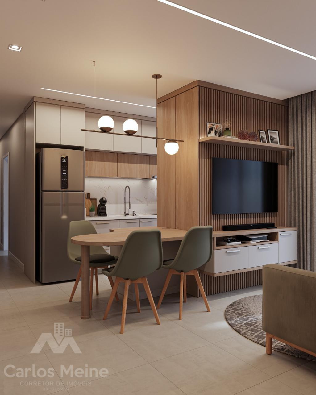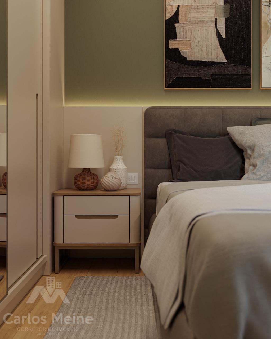 Composto por 2 dormitórios, sala e cozinha em ambiente integrado, área de serviço, banheiro social e box de estacionamento.