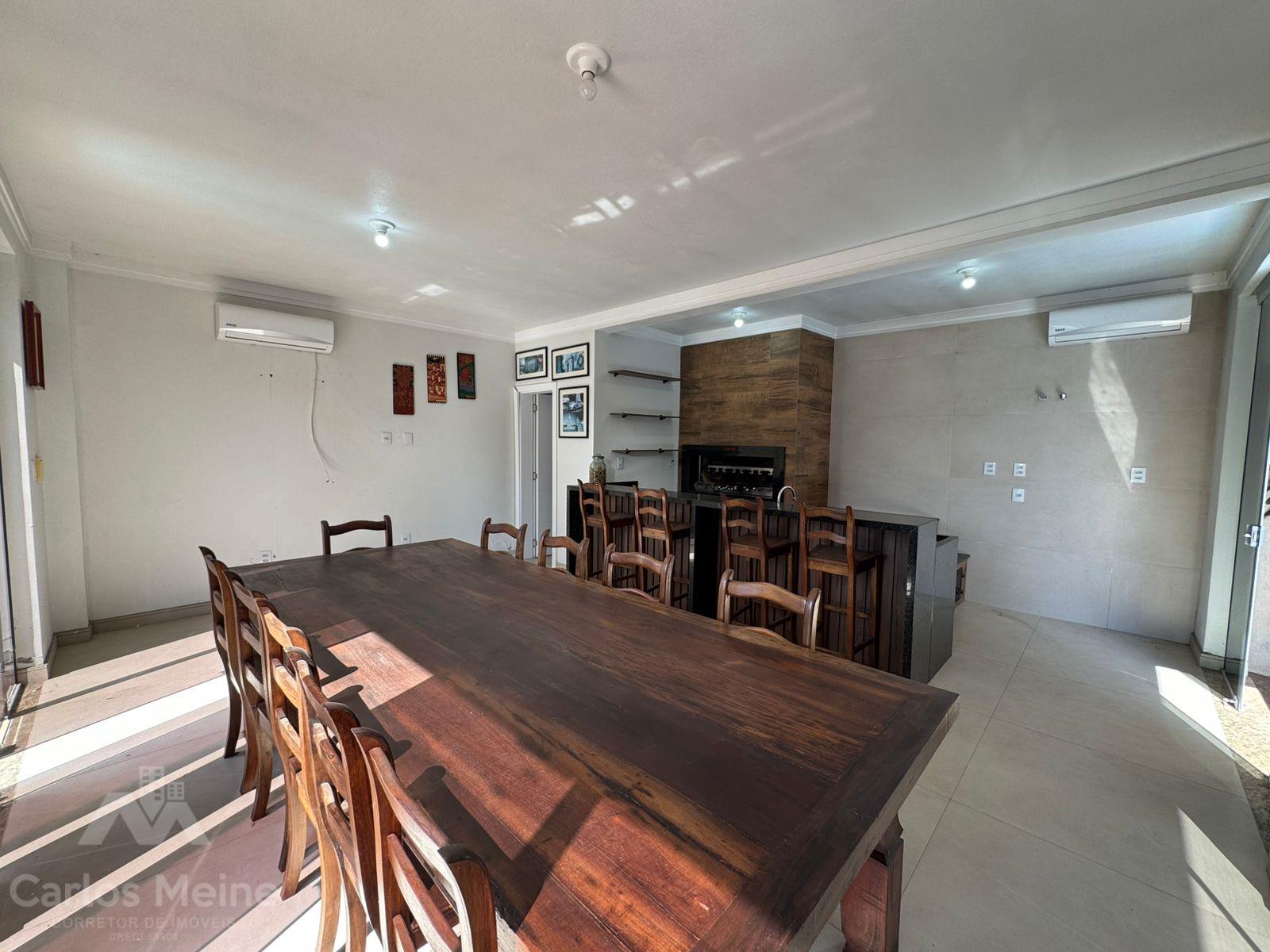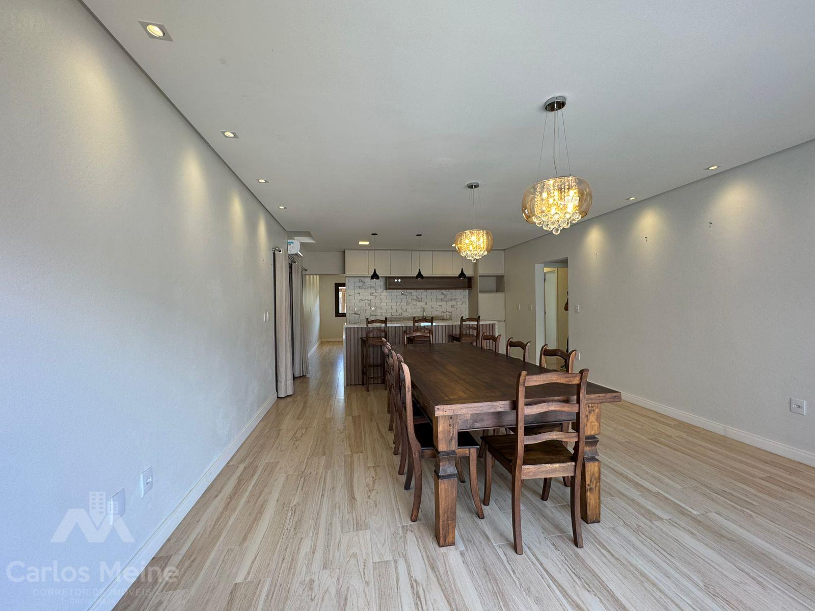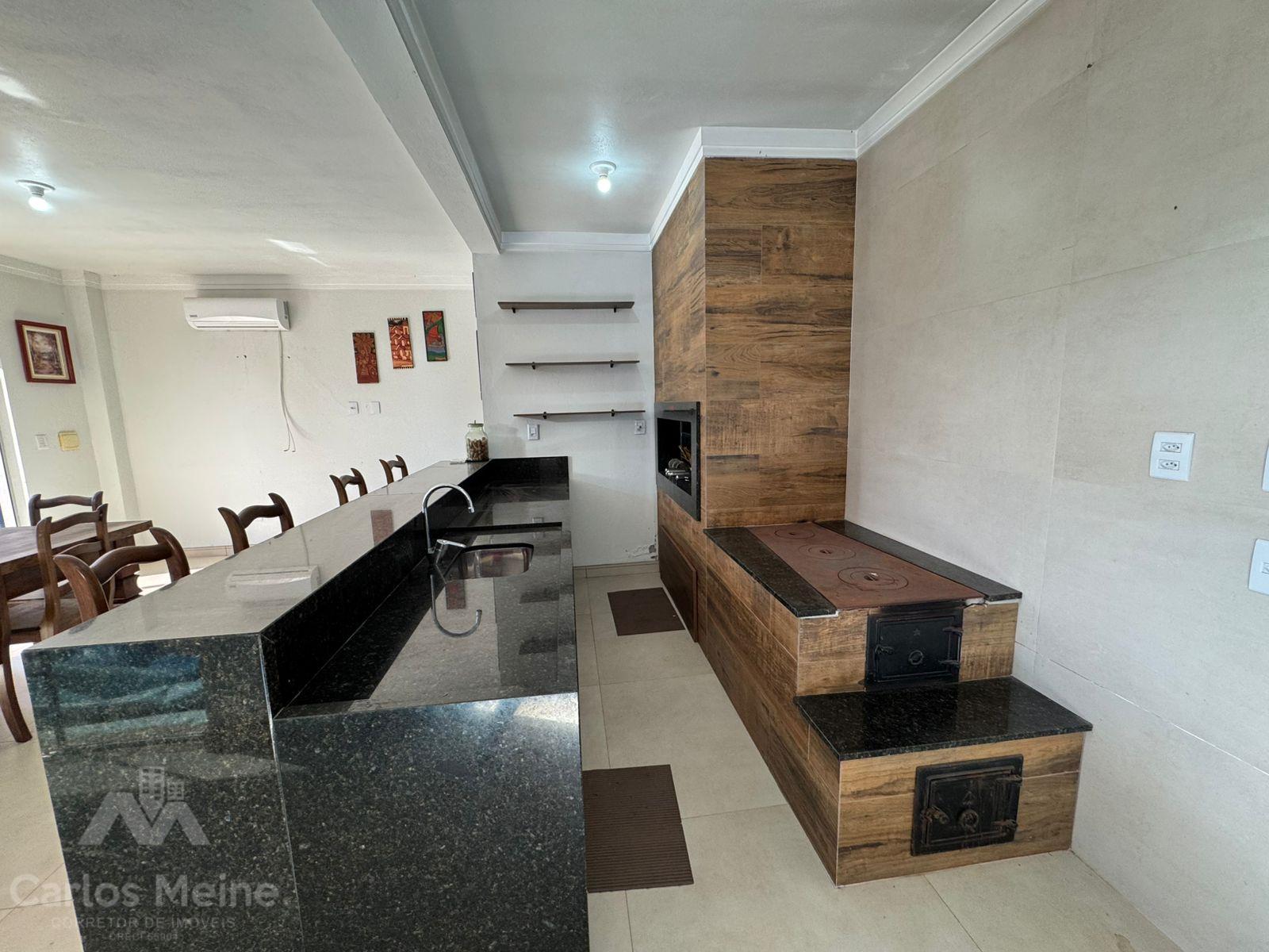 Composto por 2 dormitórios sendo 1 suíte com closet, sala de estar com lareira, sala de jantar, cozinha com móveis sob medida, área de serviço, garagem para 3 carros, quiosque equipado com área gourmet completa incluindo churrasqueira elétrica e fogão à lenha e lavabo.