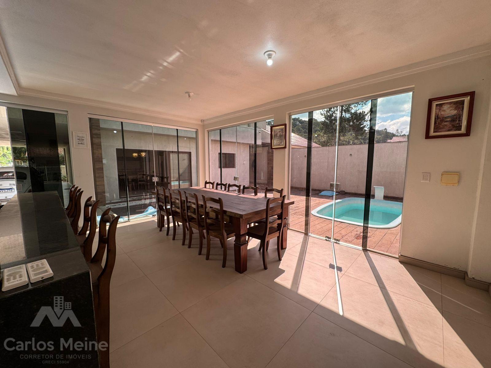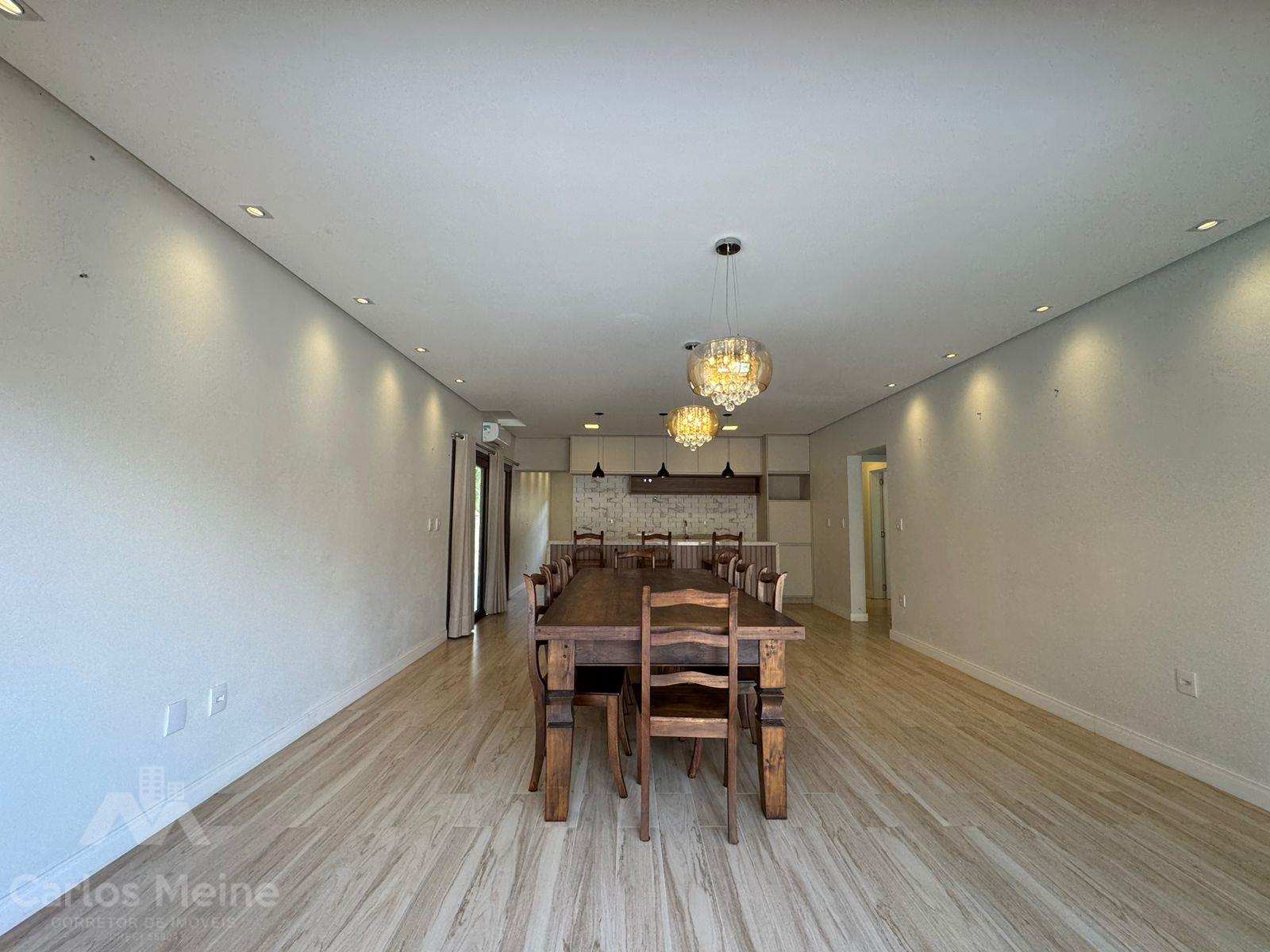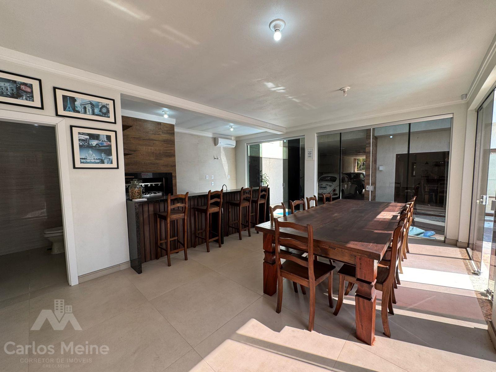 Composto por 2 dormitórios sendo 1 suíte com closet, sala de estar com lareira, sala de jantar, cozinha com móveis sob medida, área de serviço, garagem para 3 carros, quiosque equipado com área gourmet completa incluindo churrasqueira elétrica e fogão à lenha e lavabo.