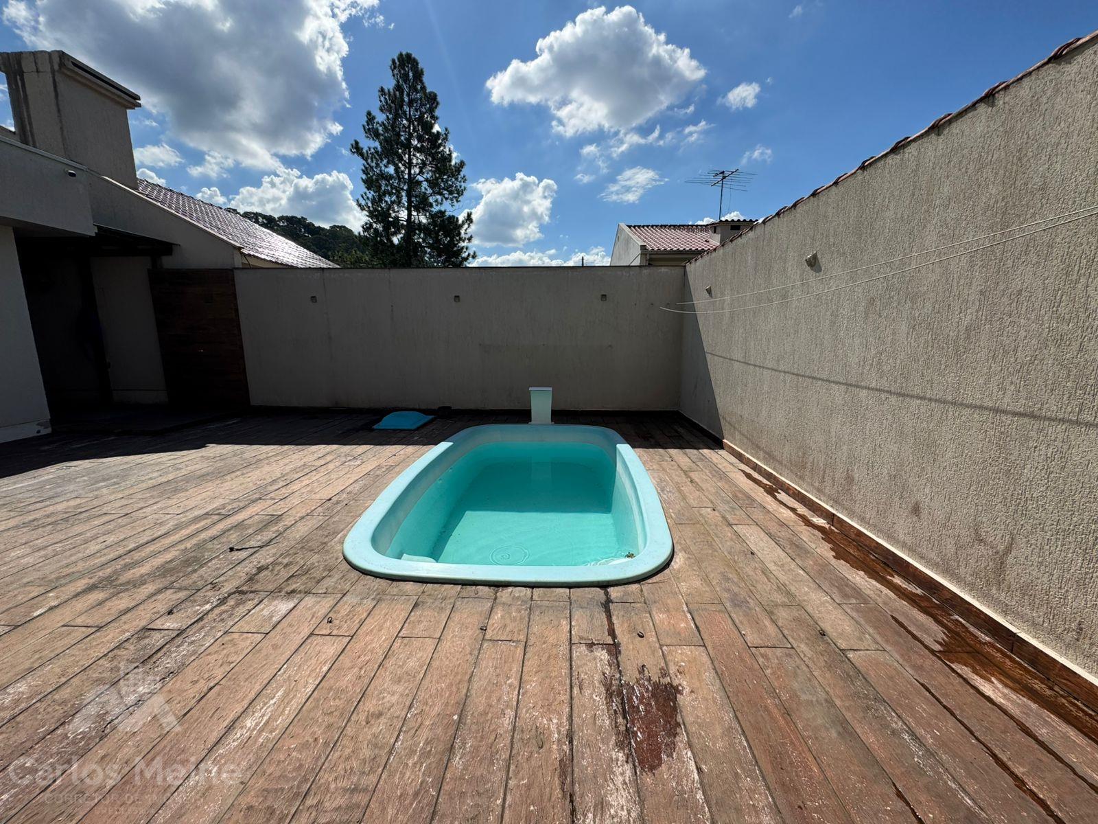 Terreno possui 444,52m² com piscina, poço artesiano, pátio fechado e ajardinado.