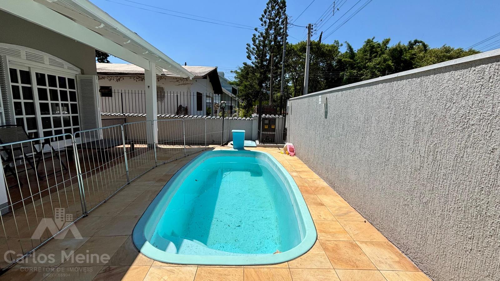 Terreno possui 403,20m² com piscina e pátio fechado.