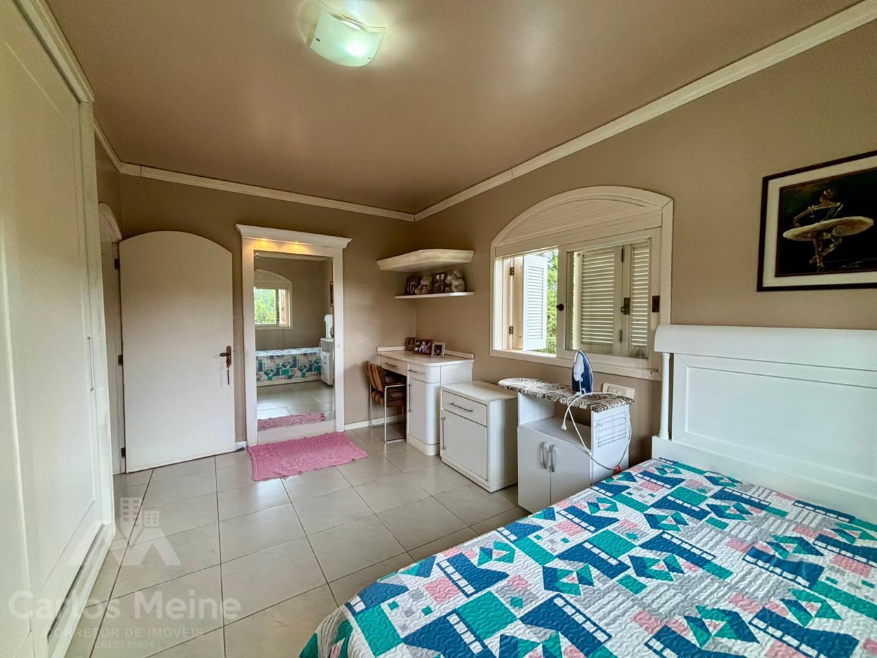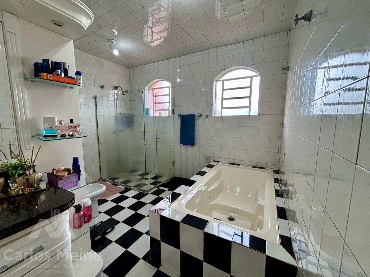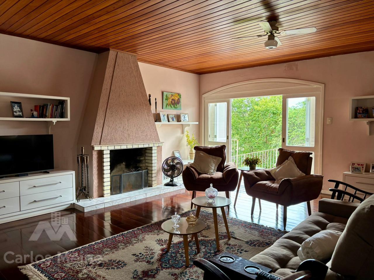 A casa principal possui 360m², contando com 4 dormitórios, sendo uma suíte ampla com banheira, copa/cozinha, sala de estar, sala de jantar, e uma sala com lareira, lavabo, 2 banheiros sociais, lavanderia, garagem e uma ampla área aberta.