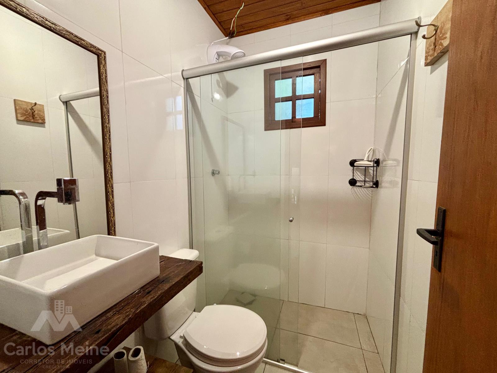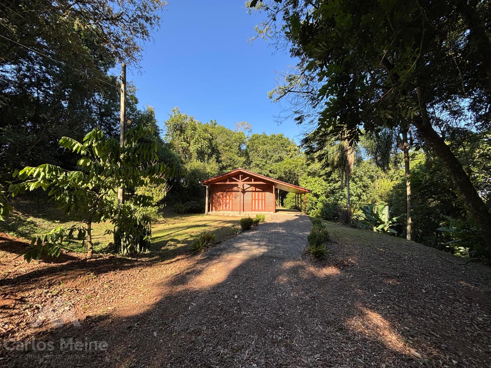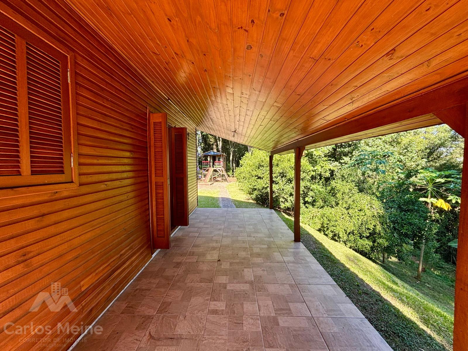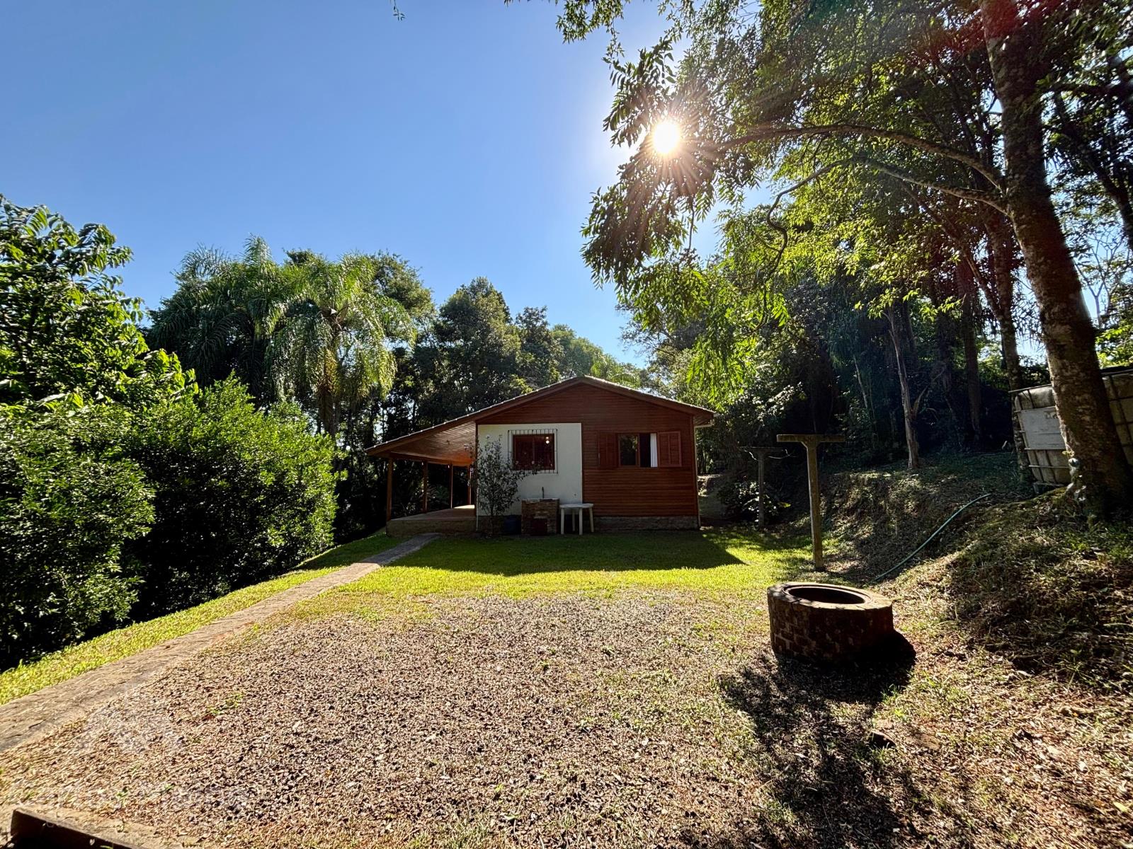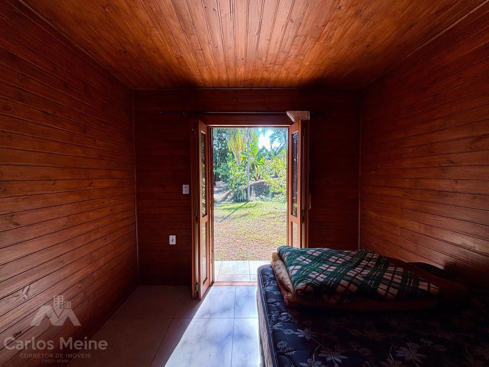 Possui um chalé amplo com aprox. 68,00m², composto por 2 dormitórios, sala de estar, cozinha com móveis sob medida, banheiro social e abrigo para carro.