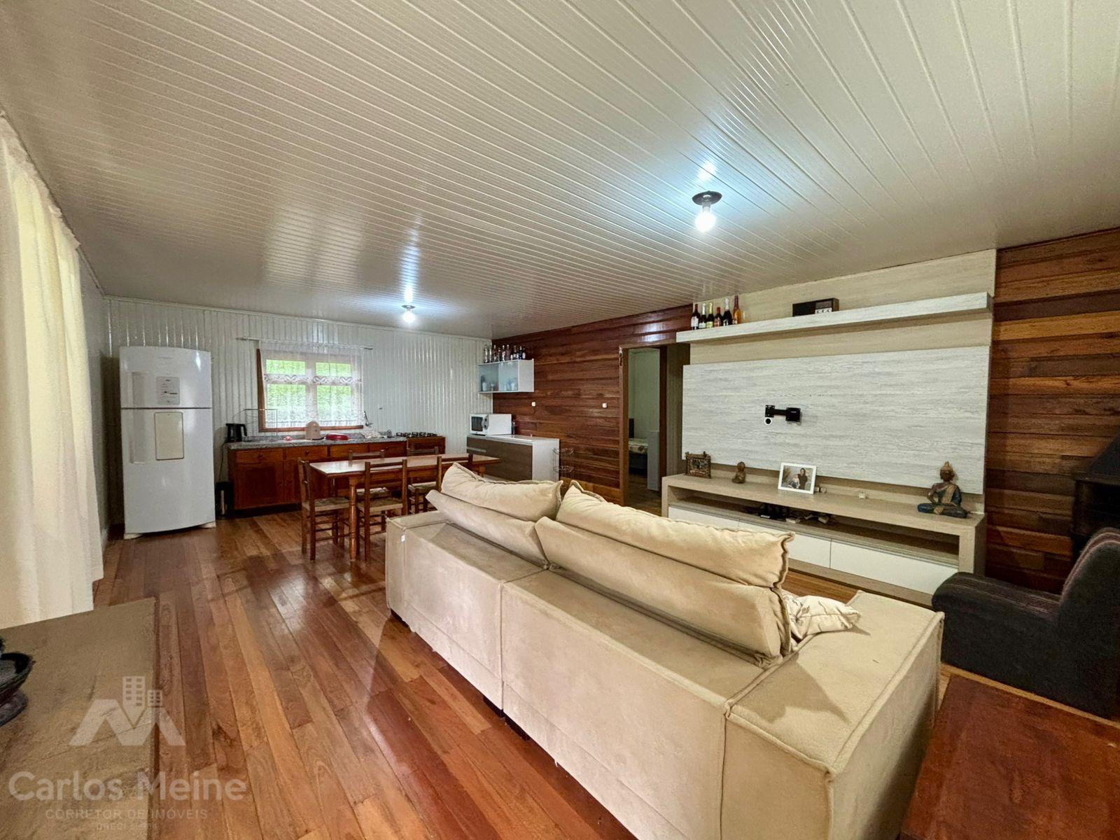 Possui um chalé amplo com aprox. 70,00m² composto por sala e cozinha em ambiente integrado, 2 dormitórios, banheiro social e varanda ampla.