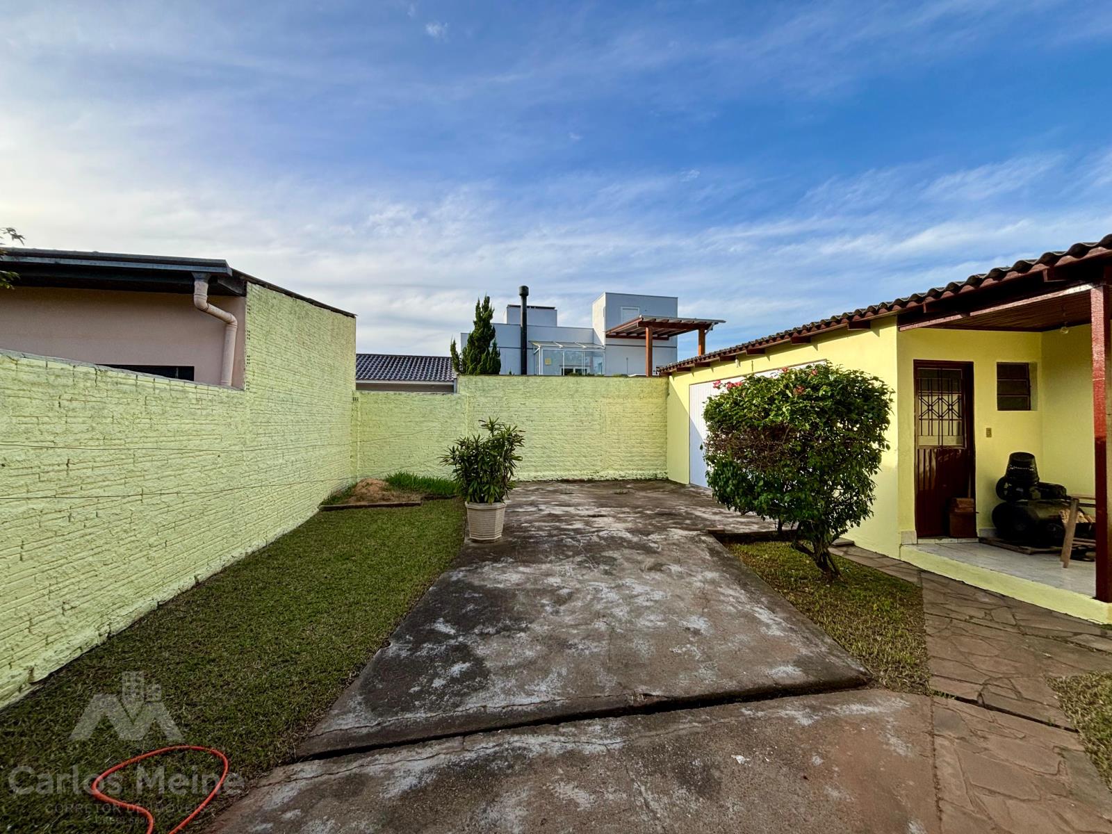 Casa em alvenaria com 3 dormitórios sendo um suite, sala de estar, cozinha, banheiro social, lavanderia e garagem para 3 carros