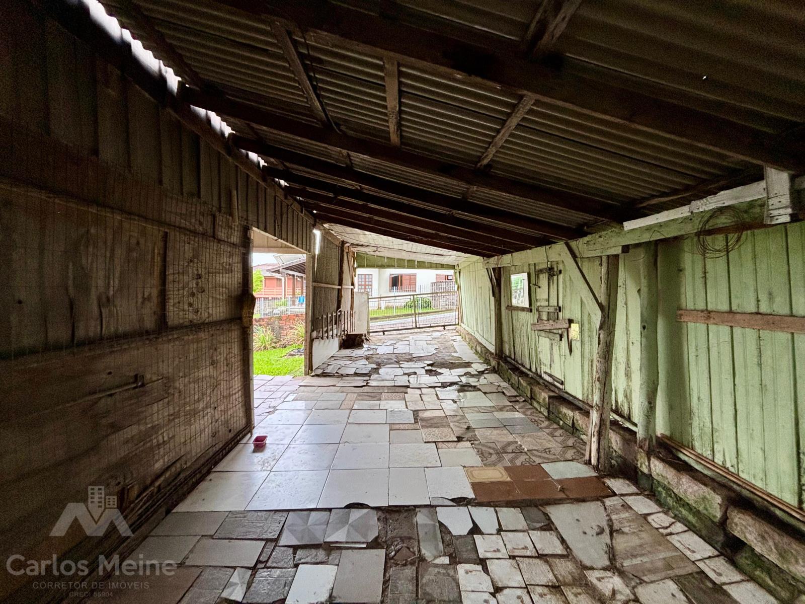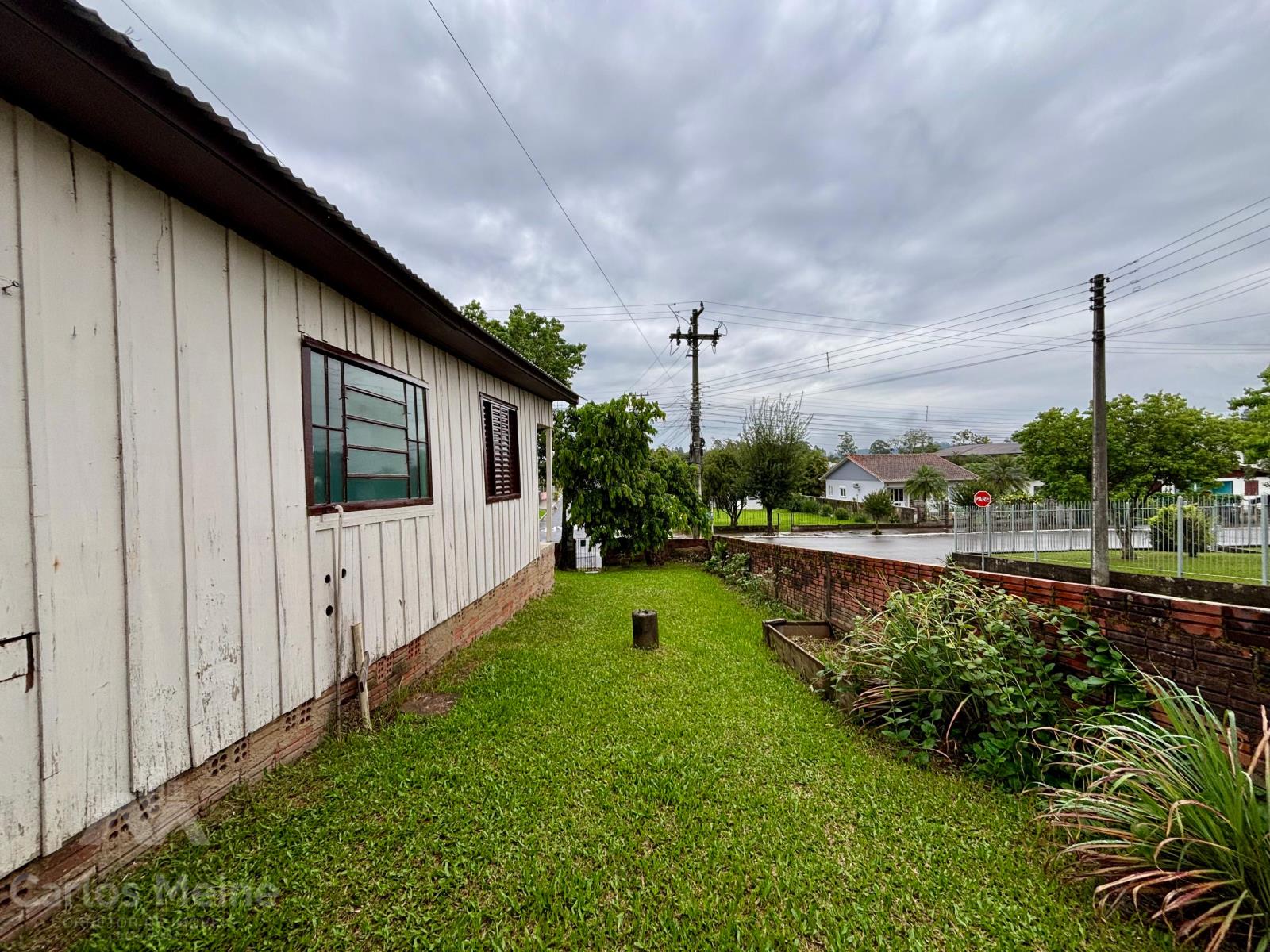 Chalé amplo composto por 3 dormitórios, sala e cozinha em ambiente integrado, banheiro, área de serviço, abrigo para carro e pátio fechado.