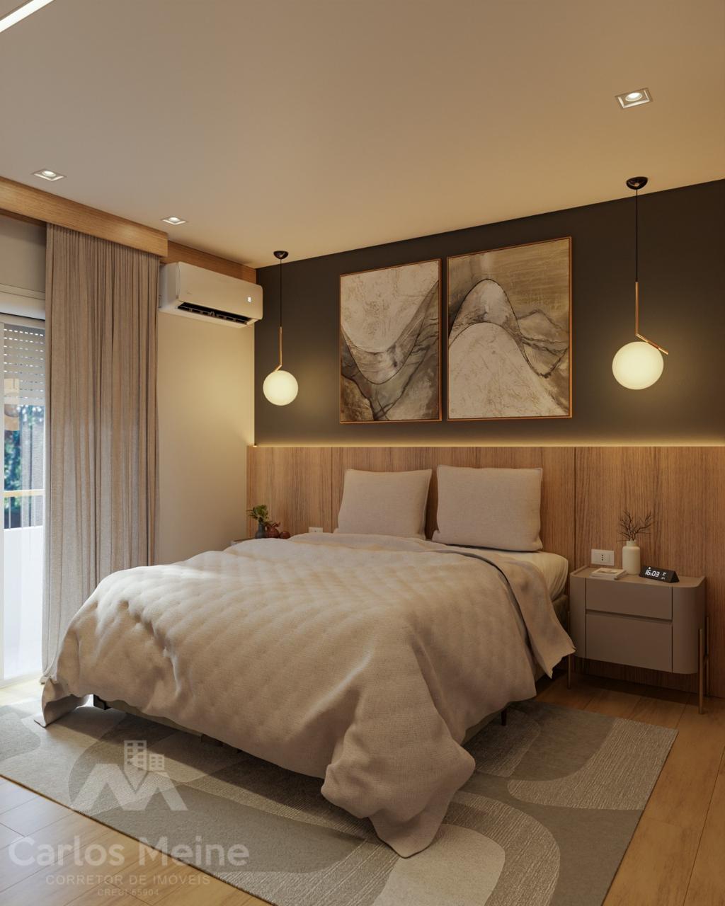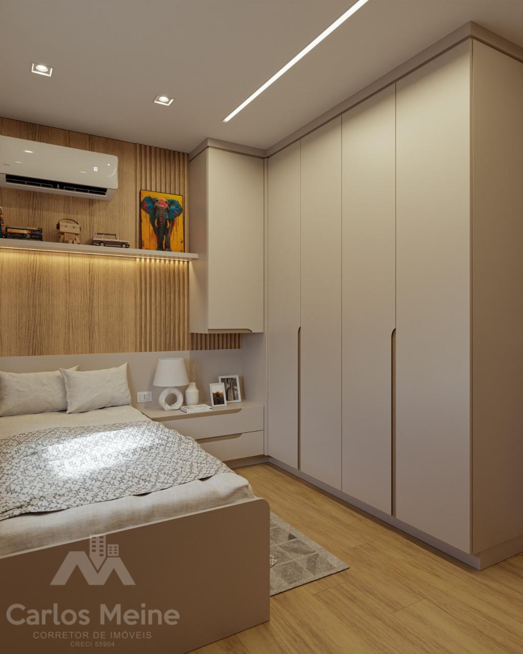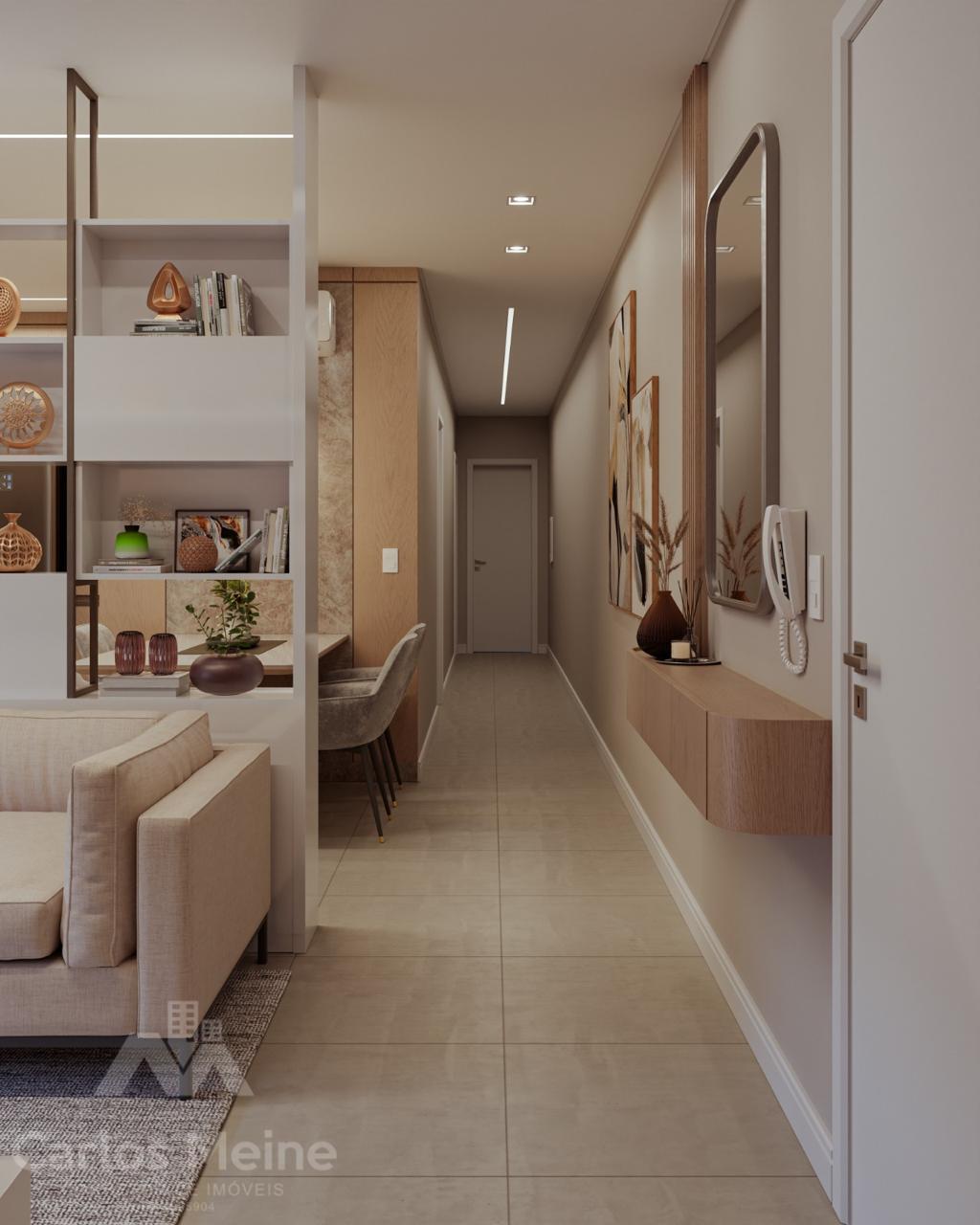 Composto por 2 dormitórios sendo 1 suíte, sala e cozinha em ambiente integrado, área de serviço, banheiro social e box de estacionamento.