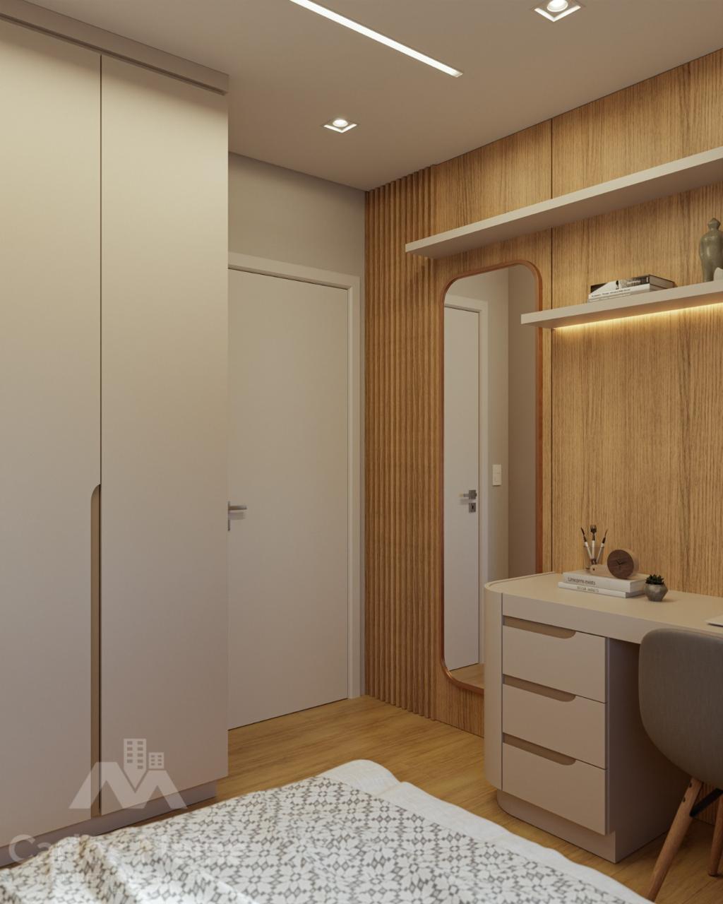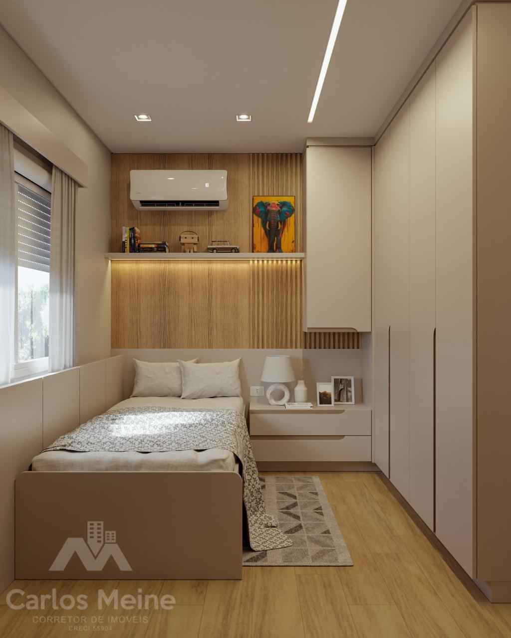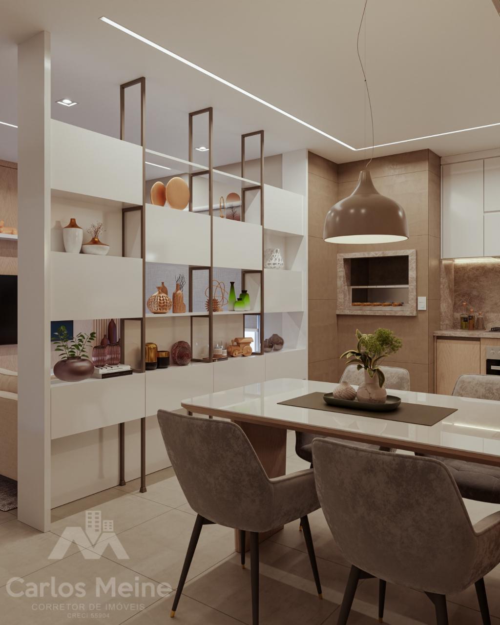 Composto por 2 dormitórios sendo 1 suíte, sala e cozinha em ambiente integrado, área de serviço, banheiro social e box de estacionamento.