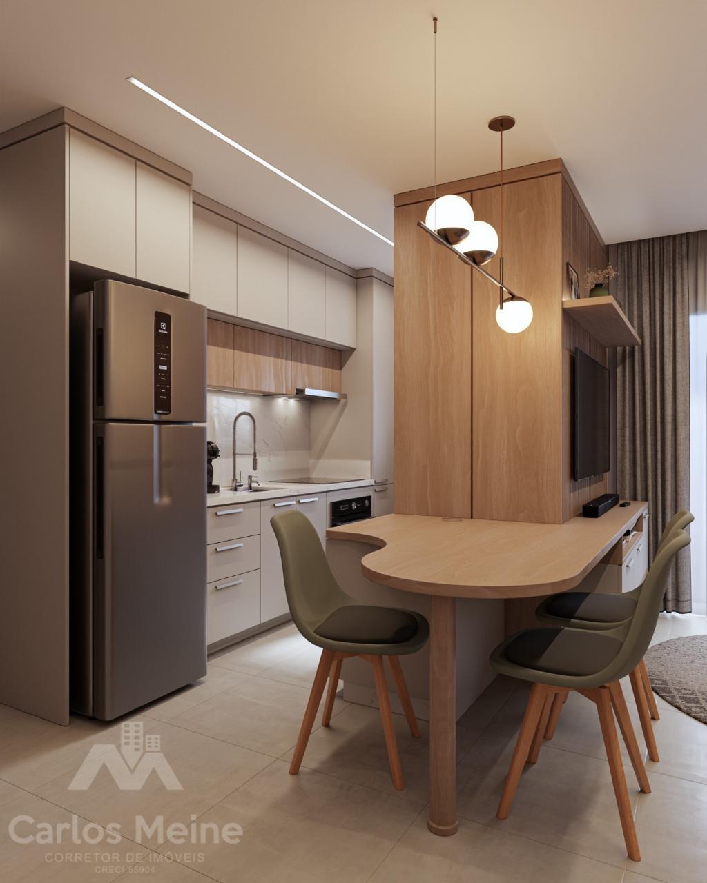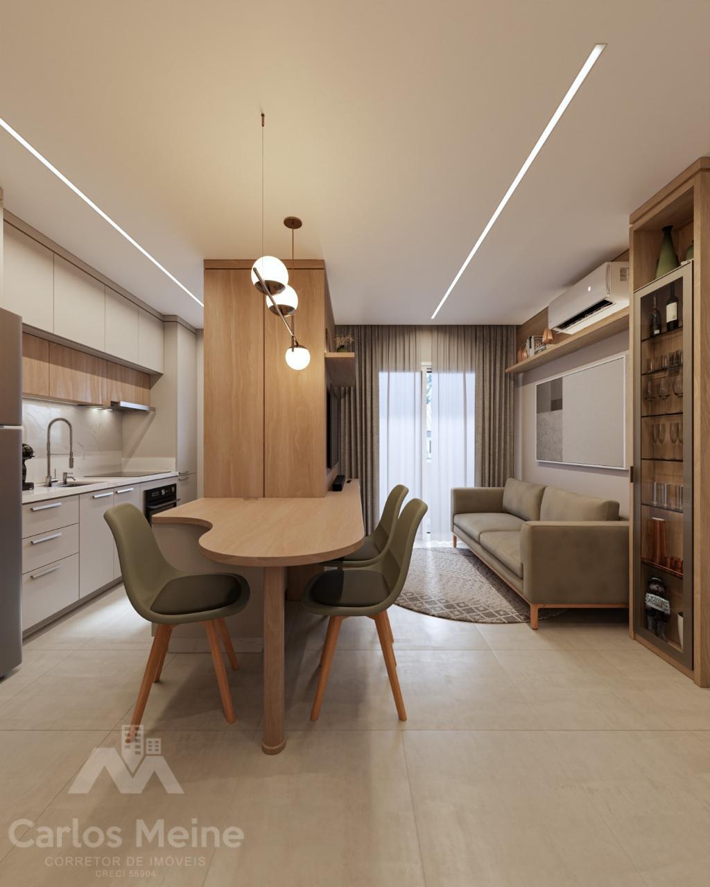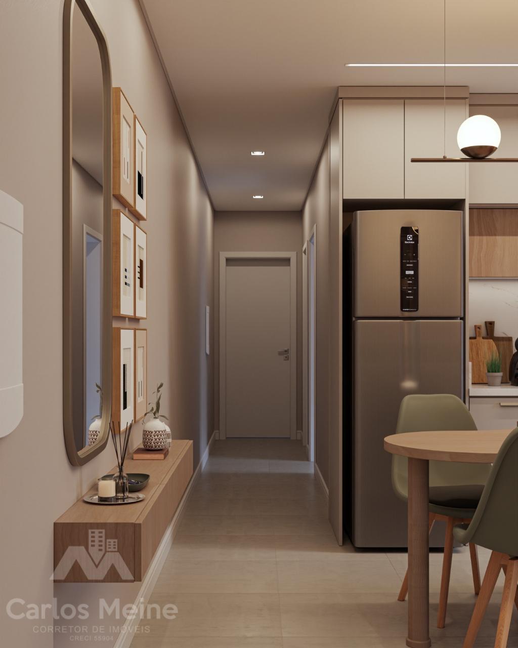 Composto por 2 dormitórios, sala e cozinha em ambiente integrado, área de serviço, banheiro social e box de estacionamento.