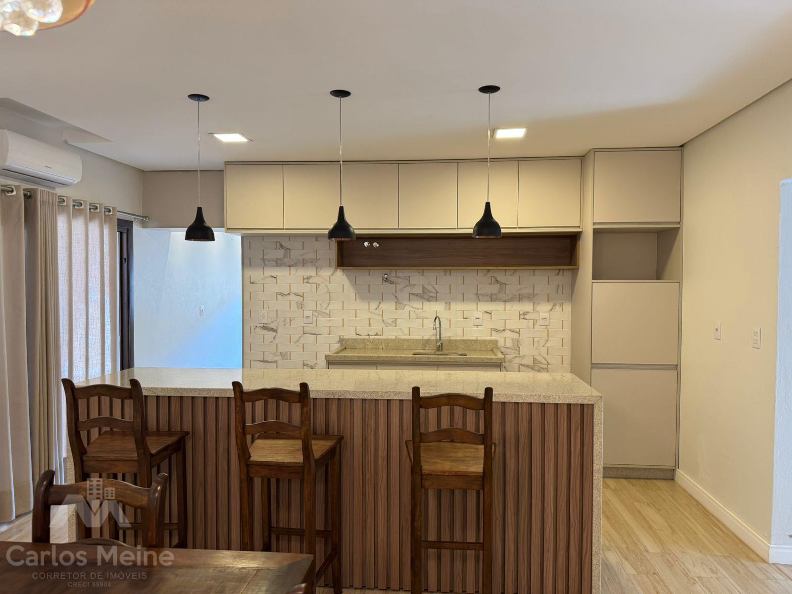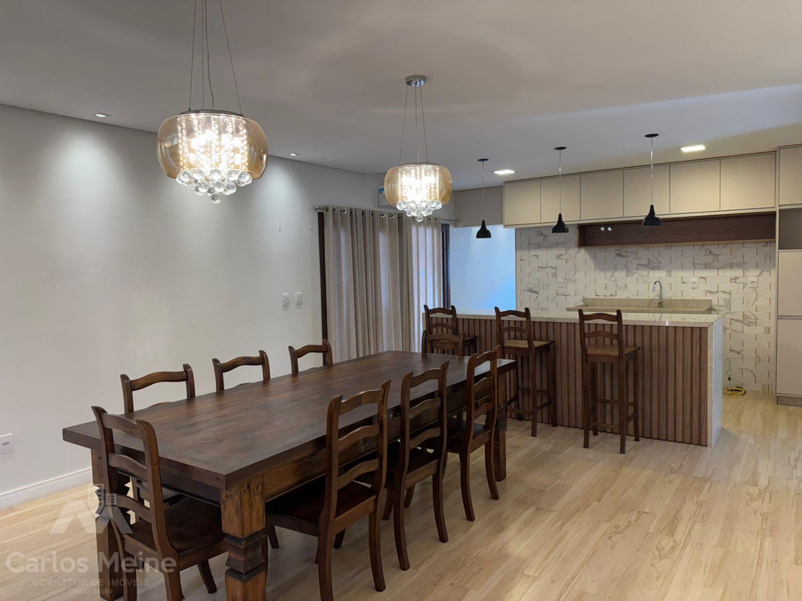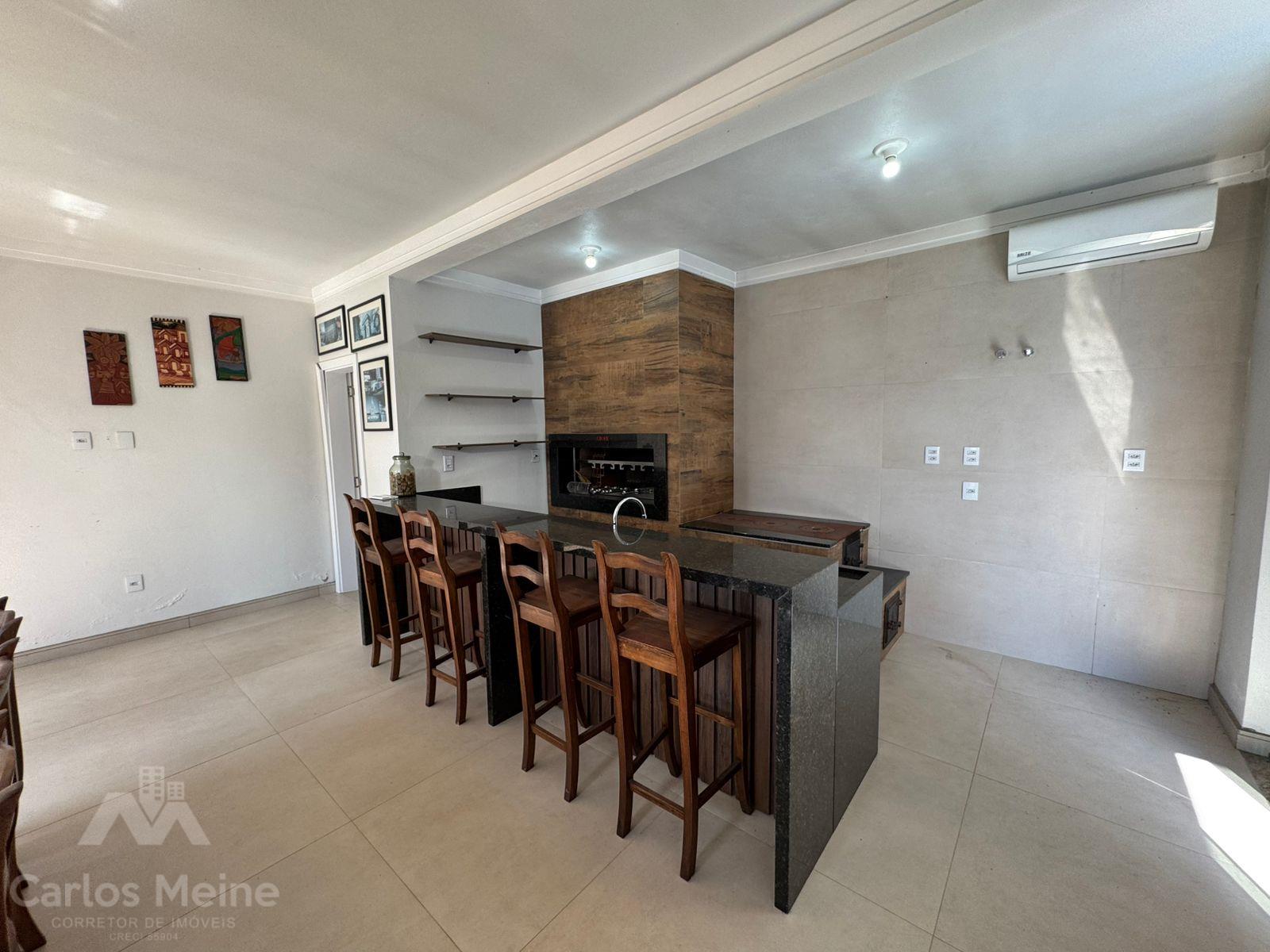 Composto por 2 dormitórios sendo 1 suíte com closet, sala de estar com lareira, sala de jantar, cozinha com móveis sob medida, área de serviço, garagem para 3 carros, quiosque equipado com área gourmet completa incluindo churrasqueira elétrica e fogão à lenha e lavabo.