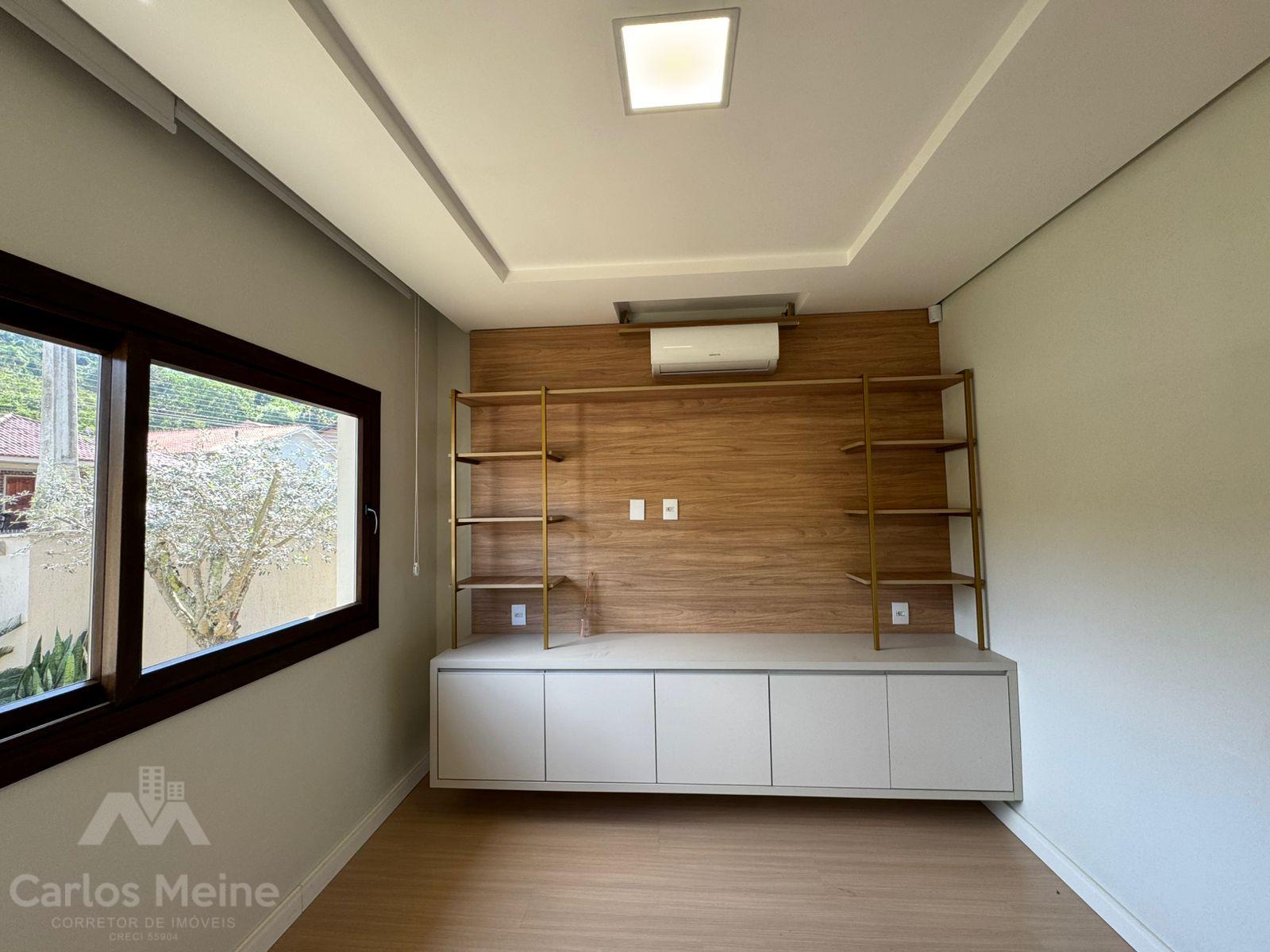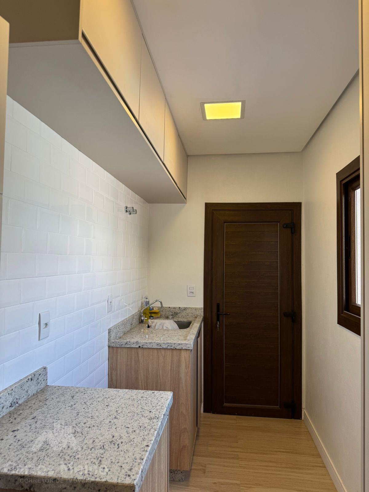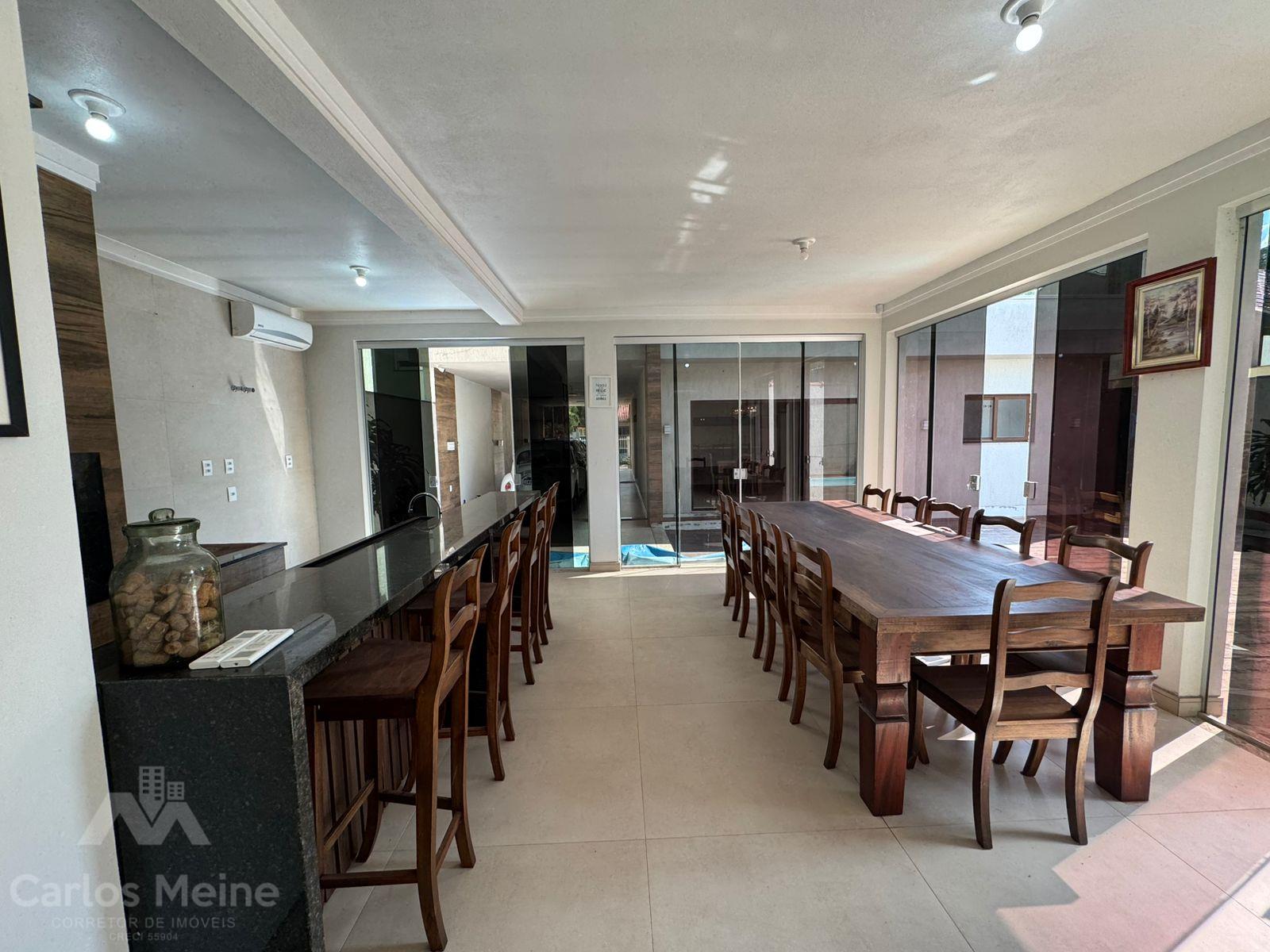 Composto por 2 dormitórios sendo 1 suíte com closet, sala de estar com lareira, sala de jantar, cozinha com móveis sob medida, área de serviço, garagem para 3 carros, quiosque equipado com área gourmet completa incluindo churrasqueira elétrica e fogão à lenha e lavabo.
