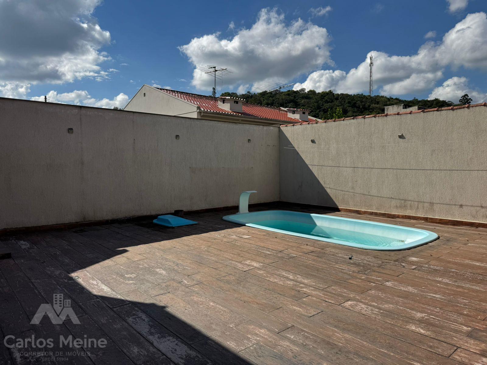 Terreno possui 444,52m² com piscina, poço artesiano, pátio fechado e ajardinado.