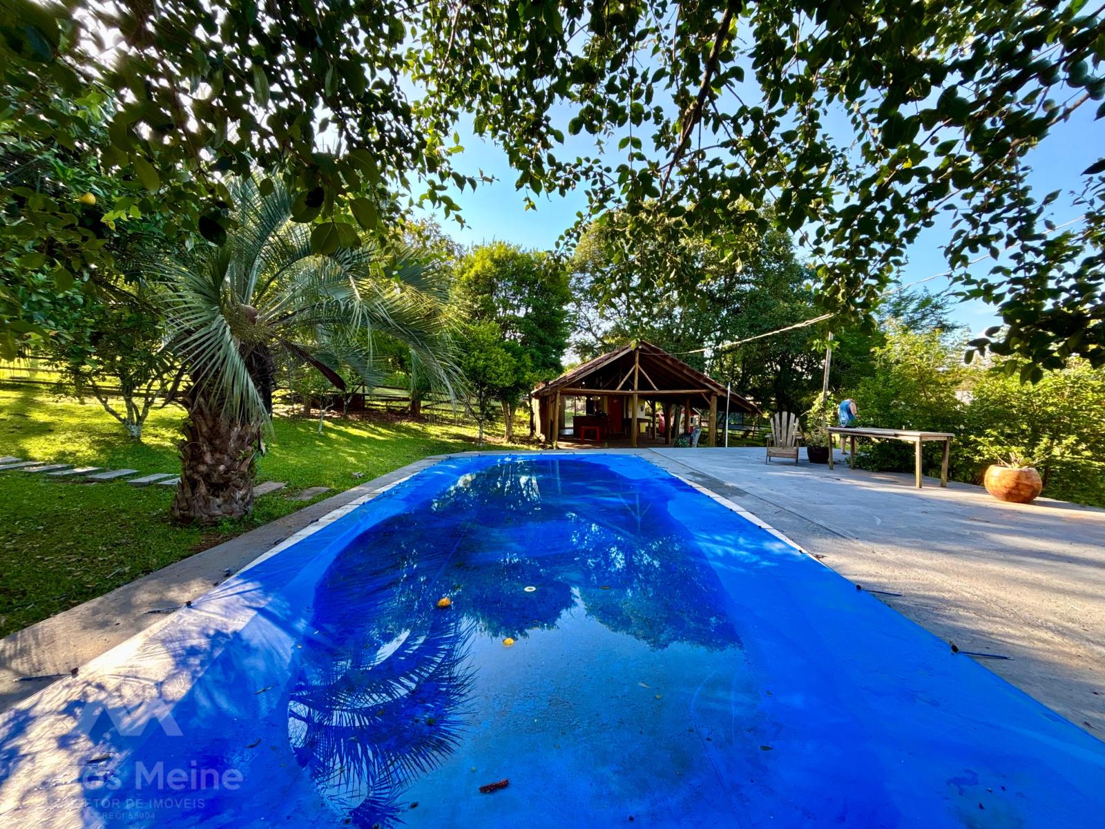 Dispõe também de um quiosque com área gourmet completa, equipado com fogão campeiro, churrasqueira, forno, fogão, banheiro, lareira e uma piscina de 10x4m.